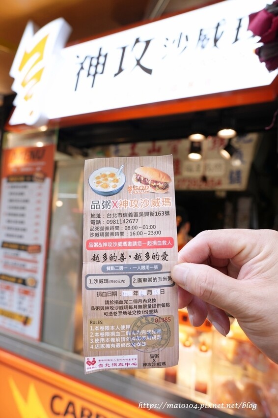 吳興街上的神攻沙威瑪&品粥推出捐血送餐點的活動