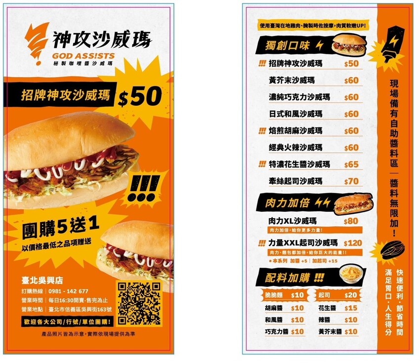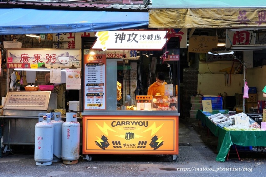 神攻沙威瑪是行動攤車,攤車有著顯眼的招牌設計、圖文設計也很獨特,令人印象深刻