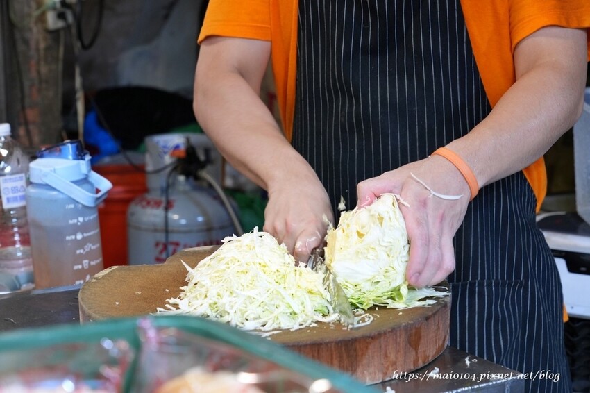 只見老闆一個俐落的快刀手法,輕鬆切完一顆高麗菜